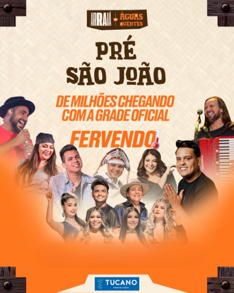 O prefeito de Tucano, Ricardo Maia, anunciou na terça-feira (24) a grade completa das atrações do Arraiá das Águas Quentes, que será realizado no distrito de Caldas do Jorro, de 17 a 19 de junho.