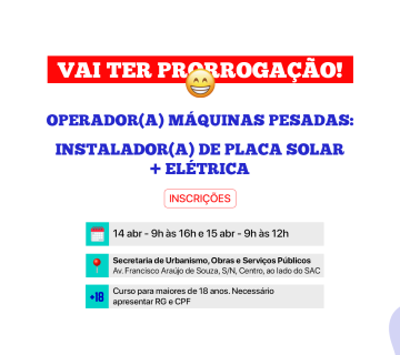 Inscrições para cursos gratuitos foram prorrogadasPrefeitura De Tucano5 de abril de 2023As inscrições para os cursos gratuitos do Avançar, em parceria com a Prefeitura de Tucano, continuam abertas ... Leia mais
